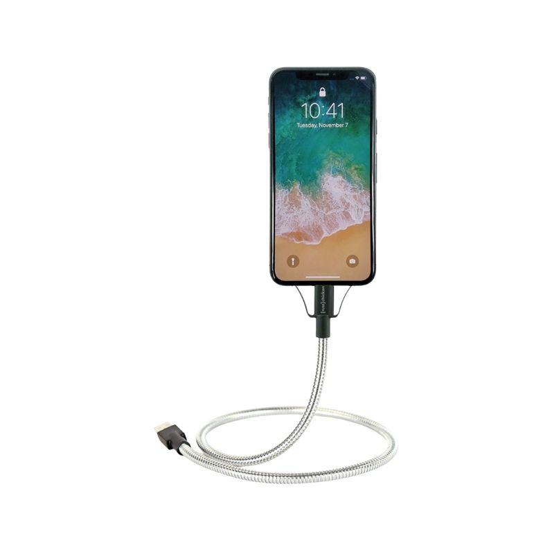 Que genial, nunca te imaginaste un cable con una ultra resistencia y rigidez lo cual lo hace indestructible. Además podrás colocar tu Smartphone con puerto tipo lightning en el soporte que lo hara lucir completamente elegante y suspendido en el aire, sirve como selfie stick incluye garantia de por vida.