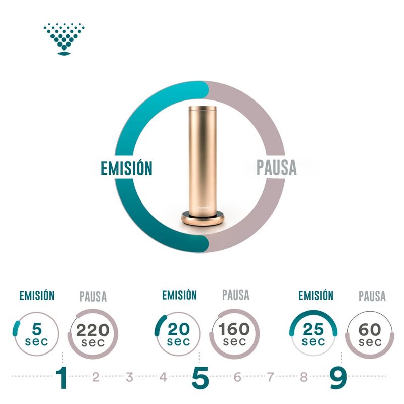 Este difusor de vanguardia permite ajustar el nivel de fragancia de 1 a 9, logrando una intensidad exactamente como la deseas gracias a intervalos de neblina intermitentes. Con la tecnología patentada de difusión de aire y un diseño elegante de aluminio premium, dispersa microgotas más ligeras que el aire para difundir una fragancia ultrafina de manera eficiente por todo tu espacio. Además, cuenta con luces de pantalla que se apagan automáticamente tras 60 segundos de inactividad, asegurando que la luz no te distraiga ni interrumpa tu descanso. Utilízalo con los aceites de fragancia limpios y naturales de HoMedics SereneScent, certificados por el USDA y 100% basados en bioproductos, disponibles en cinco escenarios sensoriales: Tokyo Tea, Parisian Affair, Amalfi Bliss, Moroccan Magic, y Maldives Escape.