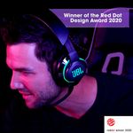 El micrófono vocal de asta ofrece una comunicación clara, mientras que un dial de ajuste con certificación DISCORD le permite equilibrar el nivel de sonido juego-chat. Acabadas en cuero, las almohadillas de espuma viscoelástica le dan un máximo confort, aunque llegue a agotar la batería de 14 horas jugando. Domine a sus oponentes y consiga una clara ventaja gracias al sonido de los auriculares JBL Quantum 600.