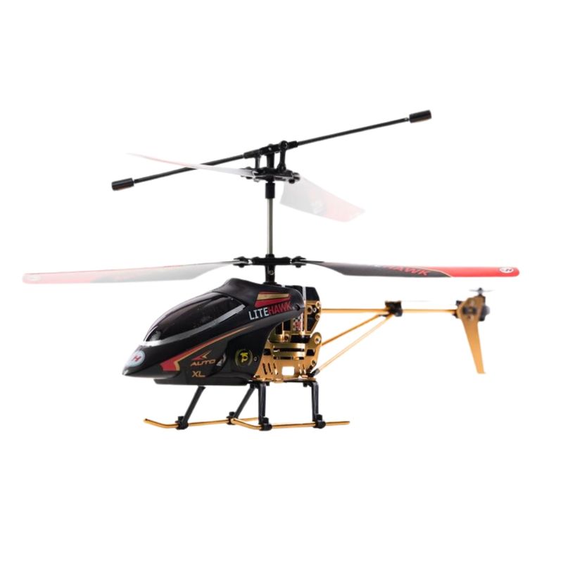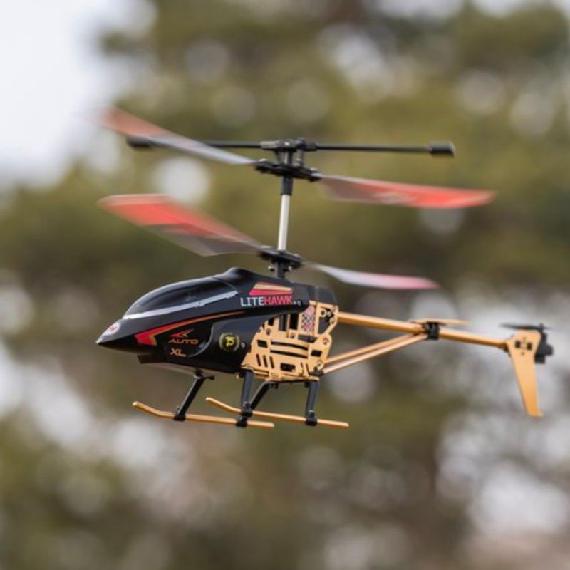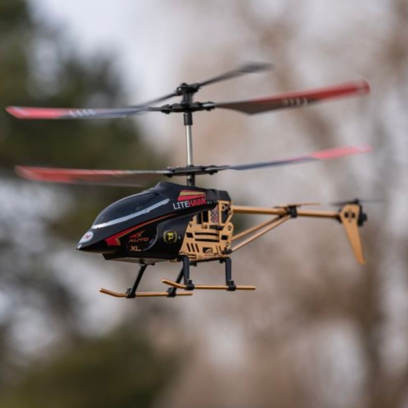 Celebra el vuelo con estilo con el helicóptero LiteHawk XL Edición 15 Años, combinando la elegancia de un esquema de color dorado anodizado con la última tecnología de vuelo digital para una experiencia aérea sin igual.
