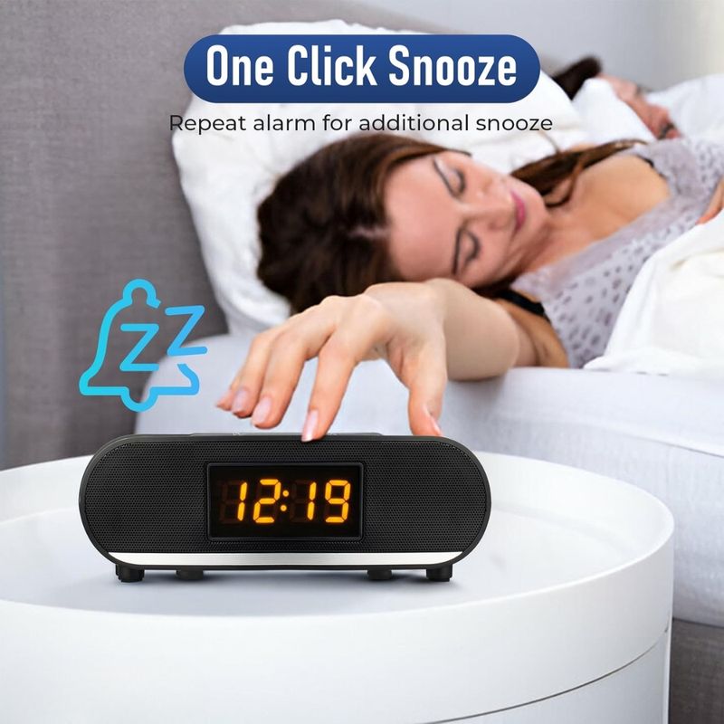 Despiértate con tu música favorita gracias a su Bluetooth y disfruta de carga USB, alarma doble y pantalla LED clara y brillante.