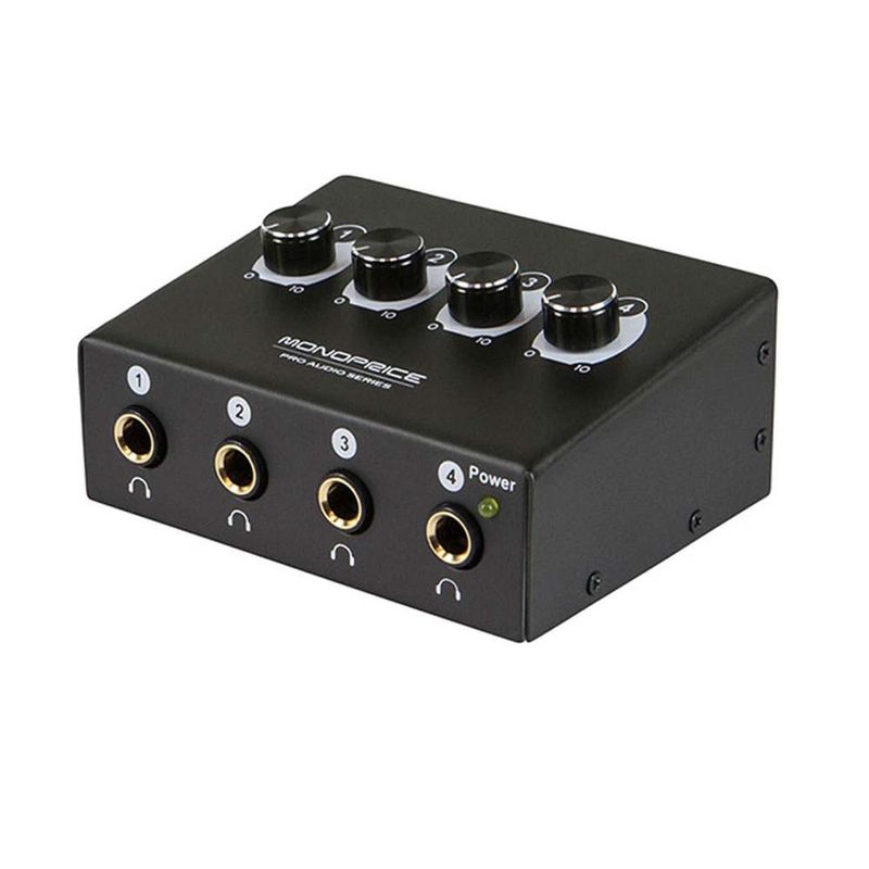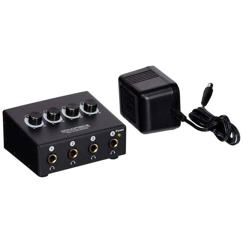 Aumenta tus capacidades de monitoreo de audífonos. Este amplificador presenta cuatro salidas de audífonos amplificadas cada una con su propio control de volumen independiente.