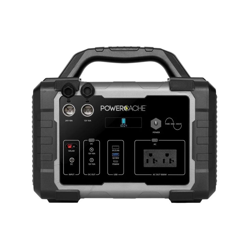 La estación de energía portátil PowerCache 1000 está equipada con baterías internas de litio ternario, ofreciendo 1075Wh de capacidad total y hasta 1000W de potencia de salida continua. Su onda sinusoidal pura es segura para dispositivos electrónicos sensibles y pequeños electrodomésticos. Dispone de diversos puertos: dos puertos AC de 120V, un USB-C PD de 60W, dos puertos USB-A, un puerto para auto de 12V, y múltiples salidas DC. Se puede recargar de tres maneras: con el adaptador AC incluido, con el cargador de auto de 12V a través de paneles solares (no incluidos). Compacta y ligera, es ideal para situaciones como apagones, acampadas, y viajes por carretera, proporcionando energía limpia sin el ruido ni las emisiones de un generador de gas. Incluye múltiples características de seguridad, como protección contra sobrecargas y cortocircuitos, y está respaldada por una garantía limitada de 2 años.