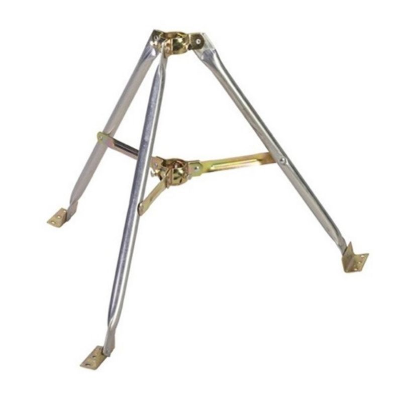 Soporte tipo trípode para antena de televisión externa. Viene completamente ensamblado y fácil de instalar. Funciona con todas las marcas de antenas exteriores.