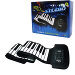 Este piano portátil cuenta con 61 teclas de silicona sensibles al tacto, diseño enrollable y cuerpo ligero, ideal para transporte fácil. Incluye altavoces incorporados, entrada para audífonos (3.5 mm) y salida de audio para parlantes externos. Tiene funciones de grabación, reproducción, control de volumen y tono, además de diferentes voces e instrumentos integrados. Funciona con adaptador de corriente (incluido) o con 4 pilas AAA. Medidas extendido: aprox. 103 cm x 17 cm. Recomendado para mayores de 6 años, perfecto para principiantes o músicos en movimiento.