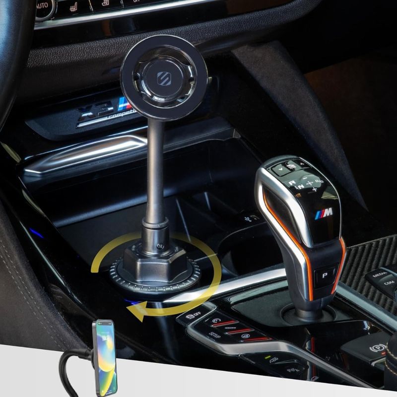El soporte Scosche MagicMount SMSCUP transforma el portavasos de tu auto en un punto seguro y cómodo para colocar tu celular. Su potente imán MagSafe mantiene firme tu iPhone o Android, incluso en caminos irregulares. El cuello de cisne ajustable te permite moverlo hasta encontrar el ángulo perfecto para usar GPS, contestar llamadas o controlar tu música sin apartar la vista del camino. Se instala sin herramientas, es discreto y no ocupa espacio en el tablero ni parabrisas.