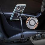 Este soporte cuenta con una base expandible que se ajusta fácilmente a la mayoría de portavasos estándar. Su cuello de cisne flexible de aproximadamente 18 cm permite ajustes precisos de altura y ángulo. La cabeza magnética incorpora imanes de neodimio de grado automotriz, compatibles con la tecnología MagSafe, ideal para iPhone 12, 13, 14, 15 y 16, así como otros dispositivos Android con placa metálica incluida. Su diseño robusto garantiza estabilidad sin vibraciones, ideal para mantener tu smartphone visible y accesible mientras conduces.