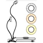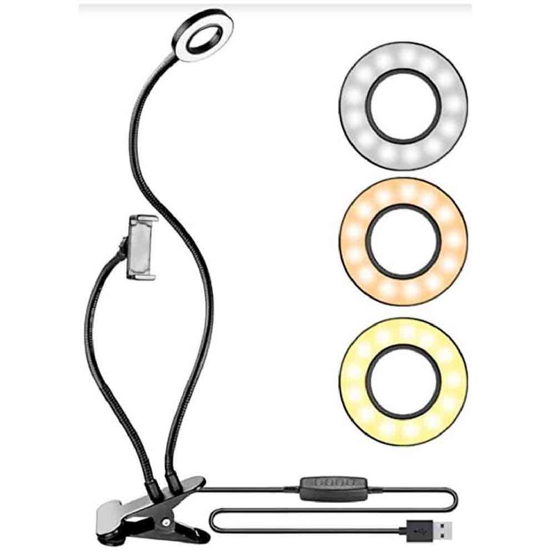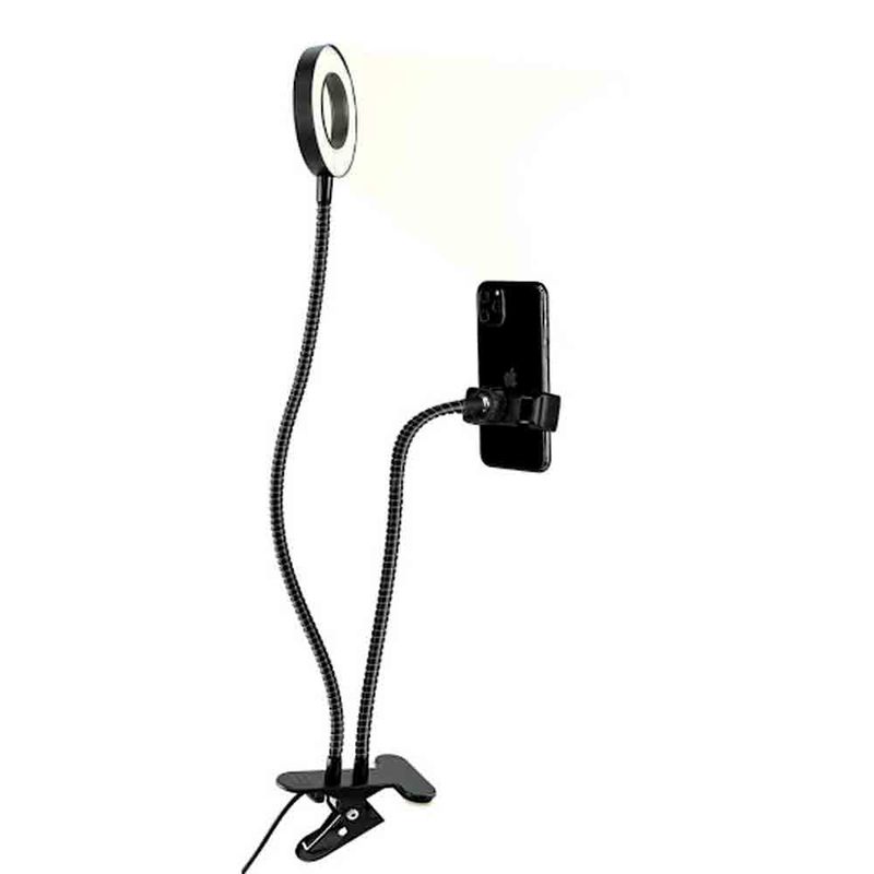 Anillo de luz para selfie con soporte de agarre universal que se adapta a cualquier superficie y soporte para teléfono, es el compañero perfecto para tus fotografías, grabaciones y transmisiones en vivo de tus redes sociales.