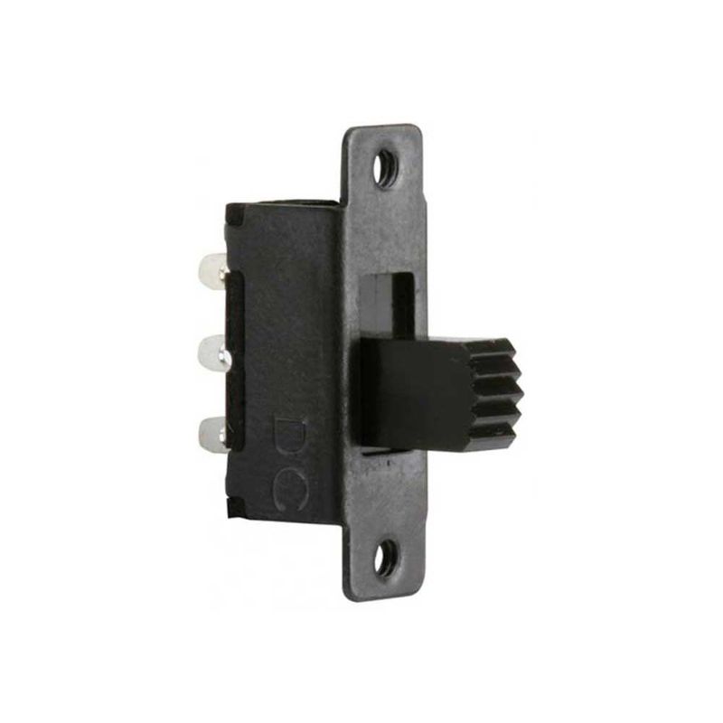 Interruptor miniatura deslizable (Switch), de 0,5 A, 127 V CA, 1 polo, 2 tiros, 2 posiciones y base para atornillar en lámina pavonada.