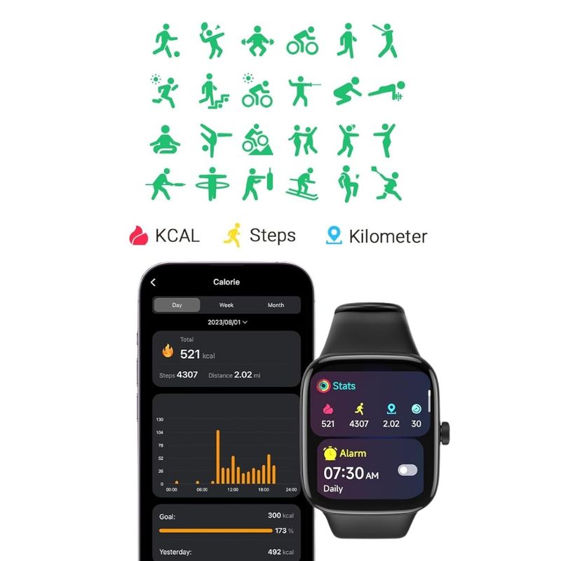 El TOZO S7 destaca por su pantalla AMOLED de 1.85 pulgadas con resolución ultra HD, que ofrece una experiencia visual brillante y fluida. Incluye sensores avanzados para monitoreo de salud como frecuencia cardíaca, saturación de oxígeno (SpO2), y análisis del sueño. Cuenta con conectividad Bluetooth para sincronizar llamadas y notificaciones desde tu smartphone, además de una batería que puede durar hasta 10 días con una sola carga. Su cuerpo delgado y diseño moderno lo hacen perfecto tanto para entrenamientos como para uso diario. Es compatible con dispositivos Android e iOS, y su resistencia IP68 lo protege contra salpicaduras y polvo.