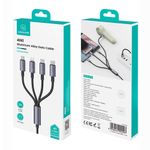 Este modelo USAMS US-SJ739 incluye conectores: USB-A a 2x USB-C, 1x Lightning y 1x MicroUSB. El cable ofrece una potencia máxima de carga de hasta 15W (5V/3A), ideal para múltiples dispositivos. La longitud es de 1.2 metros, con recubrimiento de TPE flexible y conector reforzado para mayor durabilidad. Compatible con una amplia gama de dispositivos, incluidos smartphones Apple, Android, power banks, consolas portátiles, entre otros.