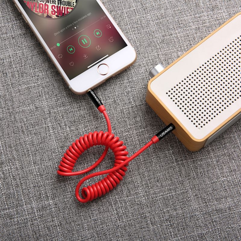 El Cable de Audio Auxiliar en Espiral USAMS de 3.5mm es perfecto para conectar tu móvil, tablet, computadora o cualquier dispositivo con puerto de 3.5mm a tu auto, altavoces o auriculares. Su diseño en espiral evita enredos y su longitud ajustable ofrece flexibilidad. Además, los conectores chapados en oro garantizan una transmisión de sonido de alta calidad sin pérdidas ni interferencias. El material de PU lo hace resistente y duradero, perfecto para un uso diario intensivo.