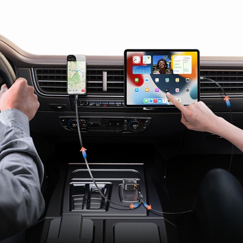 ¡Carga rápida y sin enredos en tu auto con el USAMS C41, ideal para todos tus dispositivos!