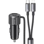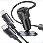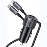 Carga dos dispositivos al mismo tiempo en tu auto con potencia de 66W. Incluye cable 2 en 1 para iPhone y Android. ¡Ideal para viajes!