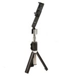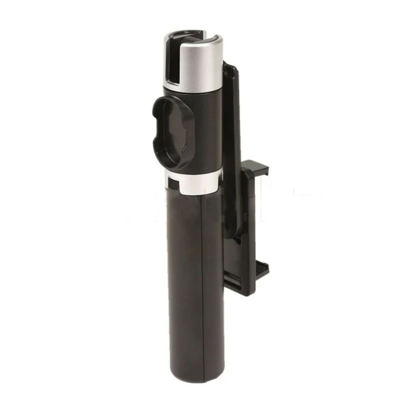 Este modelo cuenta con conectividad Bluetooth compatible con la mayoría de smartphones Android e iOS. Tiene una longitud extensible de hasta aproximadamente 60 cm y se pliega a solo unos 15 cm para fácil transporte. Está fabricado en materiales ligeros y resistentes, como aleación de aluminio y ABS. El control remoto tiene un alcance de hasta 10 metros y funciona con batería tipo botón incluida. También se puede usar como soporte de escritorio gracias a su base estable.