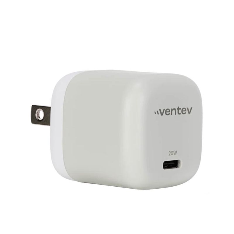 Este cargador de pared Ventev presenta un puerto USB-C de 20W, garantizando una carga universal rápida con la tecnología USB Power Delivery. Está equipado con clavijas plegables AC para facilidad de transporte. Además, incluye un cable de carga de 3.3ft USB-C a Apple Lightning en color blanco, combinando eficiencia y estética en un solo paquete.